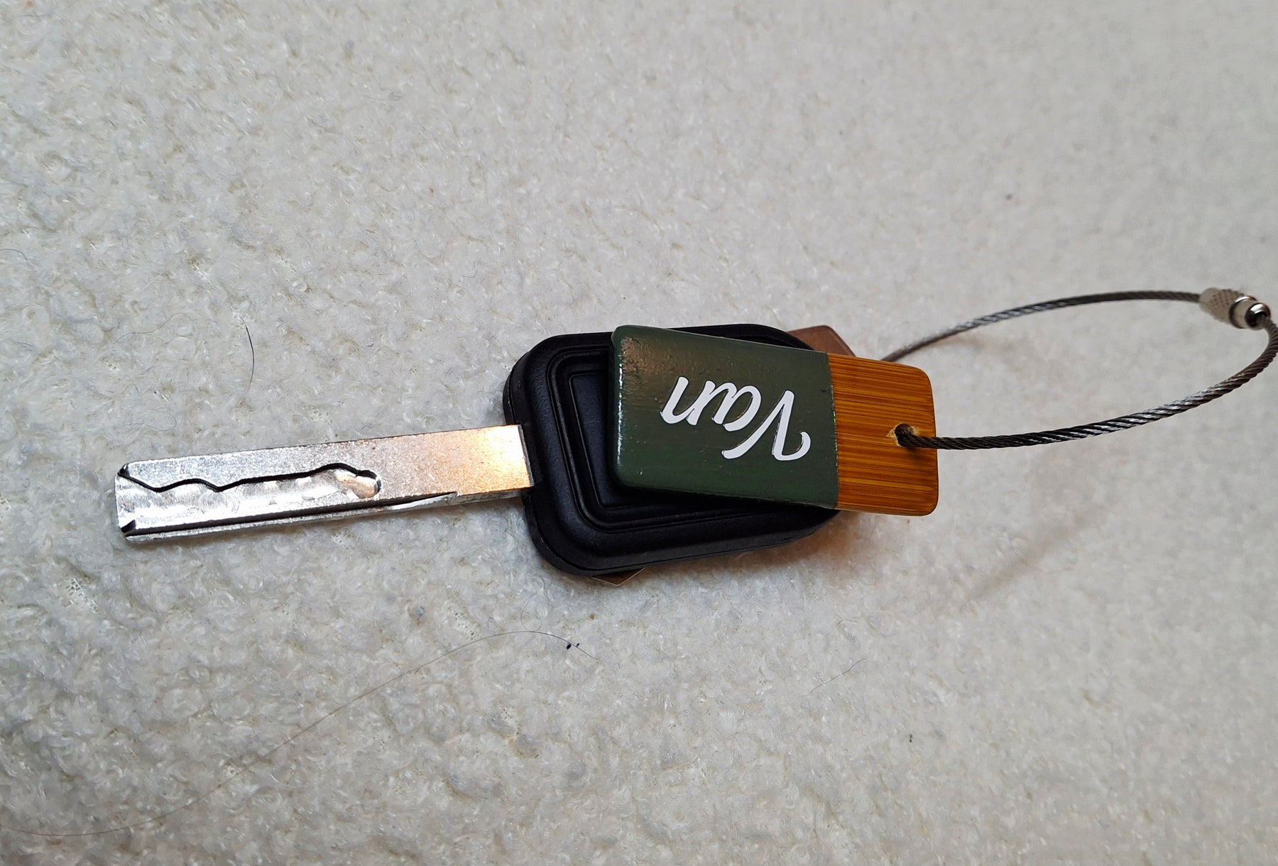 Bring a touch of nature into your everyday with this bamboo key fob. Each one is individually hand painted and finished with vinyl wording. The surface is lightly varnished for gentle protection, preserving the paint while adding a soft sheen. No two are quite the same, making each fob a one of a kind piece.